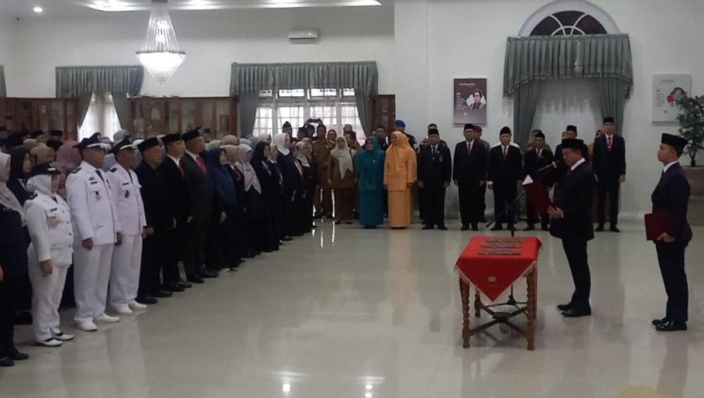 WAHANANEWS.CO, Sumedang - Bupati Sumedang, Dony Ahmad Munir, melaksanakan kegiatan promosi, rotasi, dan mutasi jabatan bagi jajaran pejabat di lingkungan Pemerintah Daerah Kabupaten Sumedang tahun 2025 di Gedung Negara Sumedang, Senin (27/10/2025).